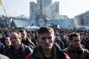 Tutto il centro di Kiev è invaso da un denso fumo nero, una cortina che impedisce la vista agli attivisti; si vedono solo bandiere. "Portate qui i medici! Non lanciate niente e non sparate - grida un uomo - dietro il fumo nero ci sono i nostri ragazzi, li possiamo colpire per sbaglio!”