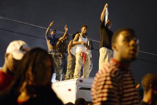 Alla marcia era presente anche il reverendo Jesse Jackson, che si è chinato singhiozzando per il dolore davanti al memoriale allestito con croci e candele nel luogo in cui il ragazzo è stato ucciso. Jackson ha invitato la gente a "trasformare il dolore in potere" e a "combattere ma non autodistruggersi" con la violenza. In quest'ultima protesta si è presentato uno scenario vario: da un uomo che al megafono invitava alla rivoluzione a un giovane che agitava in mano una Bibbia citando le sacre scritture. Alcuni dimostranti facevano dei selfie davanti al minimarket che è stato saccheggiato domenica scorsa dopo la prima veglia in onore di Michael Brown. In un centro commerciale vicino c'erano circa 100 auto della polizia pronte a intervenire.