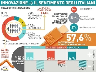 E quali ricadute avranno sulle opportunità di lavoro? Il 37,8% degli italiani è convinto che processi di automazione sempre più spinti e pervasivi determineranno un saldo negativo di posti di lavoro. Mentre il 33,5% ritiene che genereranno nuove opportunità in uno scenario di nuovi lavori ancora inesplorato. E il 28,5% crede che a cambiare sarà più la tipologia di lavoro. I più preoccupati, anche in questo caso, gli italiani con un livello socio-economico e istruzione più bassi.