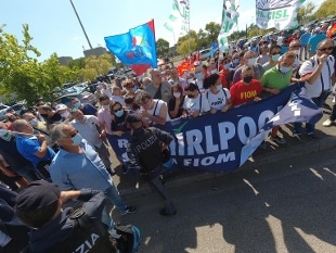 Scortati da decine di uomini della polizia in assetto antisommossa, i lavoratori del sito Whirlpool di Napoli si sono radunati all'esterno del carcere di Santa Maria Capua Vetere, Caserta, dove erano in visita il premier e il ministro della Giustizia Marta Cartabia. "Draghi ci ha detto che la decisione della Whirlpool di avviare la procedura di licenziamento per i dipendenti dello stabilimento di Napoli rappresenta un 'grave e inaccettabile sgarbo istituzionale'". Lo ha riferito il segretario della Uilm Campania Antonello Accurso al termine dell'incontro con il premier avuto nel carcere assieme agli altri due sindacalisti Raffaele Apetino (segretario Fim-Cisl Campania) e Rosario Rappa (Fiom-Cgil Napoli). "Il Presidente del Consiglio - ha aggiunto Accurso - si è impegnato a trovare una soluzione industriale alla vertenza, assicurando che si impegnerà personalmente". Il leader dei metalmeccanici della Uil ha spiegato poi che come sindacalisti hanno chiesto a Draghi di sollecitare la Whirlpool "a non avviare la procedura di licenziamento e di preservare gli accordi sottoscritti". L'altro sindacalista Rappa ha affermato che "l'importante è far ripartire la produzione al sito di via Argine, anche senza la Whirlpool".