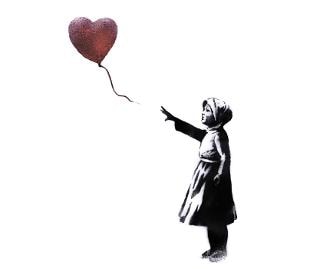 Banksy ha pubblicato sulla homepage del suo sito una Ragazza con il palloncino rivisitata, sponsorizzando alcune iniziative umanitarie per la Siria. L’immagine originale era stata disegnata su un muro di Londra, mentre la nuova versione occupa tutta la prima pagina del sito, e la bambina vi appare con un velo sulla testa.