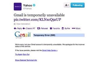 Gmail ha problemi, Yahoo twitta la foto e poi si scusa