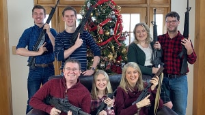 La singolare foto famiglia del deputato repubblicano Thomas Massie, rappresentante alla Camera Usa del Kentucky, che chiede a Babbo Natale "munizioni in regalo"