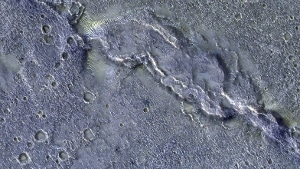 L'immagine mostra il Solis Dorsum, un sistema di creste rugose in un vasto altopiano vulcanico del Pianeta rosso, noto come Tharsis