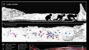 Per la prima volta è stata ricostruita una camminata umana a carponi 'fossile', avvenuta oltre 14.000 anni fa in un cunicolo alto appena 80 centimetri, dove 5 individui del Paleolitico Superiore andarono in esplorazione armati di torce.