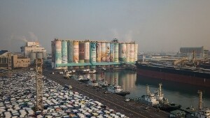 Dei silos di grano da Guinness dei primati che ora sembrano libri su uno scaffale.