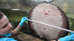 La foto scattata durante le periodiche operazioni di misurazione degli animali ospitati nello zoo di Hannover