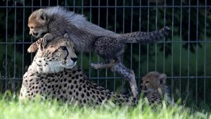 Cinque neonati sotto lo sguardo attento di mamma Savannah