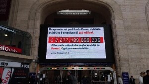 L'iniziativa dell'Istituto Bruno Leoni. "Da quando sei partito da Roma il debito pubblico è cresciuto di 115 milioni. Oltre 2.000 miliardi che pagherai anche tu. Pensaci. Ogni promessa è debito", si legge sul pannello