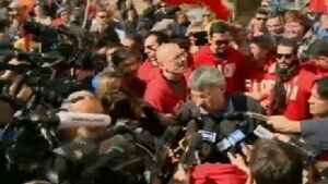 Prosegue a piazza del Popolo a Roma la manifestazione dei metalmeccanici della Fiom e Cgil contro il Jobs act. Oltre a Maurizio Landini, la leader della Cgil Susanna Camusso, ed esponenti politici della sinistra Dem, di Sel e Italia dei valori. Ecco le voci dei manifestanti raccolte dall'inviata...