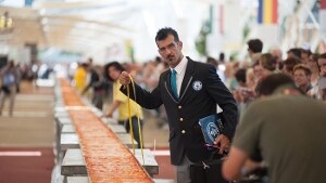 Preparare la pizza più lunga del mondo per festeggiare la "margherita" che compie 126 e per sostenere la candidatura per l'iscrizione della pizza nella lista Unesco del patrimonio culturale immateriale dellumanità. Per questi motivi oggi a Expo sono scesi in campo 80 componenti della Nazionale italiana pizzaioli, 200 volontari che 'vigilano' sulla preparazione e sulla cottura della pizza, 40 persone addette allo spostamento dei forni. Gli ingredienti per la pizza da record sono: una tonnellata e settecento chilogrammi di mozzarella italiana, 1.500 chili di pomodori e 150 di olio extravergine di oliva. L'impasto è fatto di farina (ben 1.700 chilogrammi), acqua e trenta chili di lievito di birra brevettato e selezionato. Tempo di cottura: tre minuti per ogni metro di pizza. Per entrare nel libro dei Guinnessè stato battuto il record stabilito in Calabria: 200 pizzaioli di Rende, in provincia di Cosenza, hanno creato una margherita lunga 1.299 metri.
