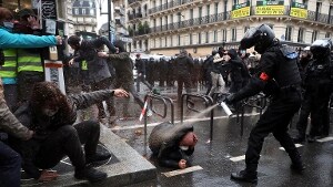 Manifestazioni anche in altre città della Francia. La capitale blindata teme gilet gialli e black-bloc. Scontri alla Bastiglia: lanci di petardi contro risposta con i lacrimogeni, un'auto in fiamme. Ministro Darmanin: almeno 37 agenti feriti