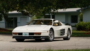 La Ferrari Testarossa della popolare serie televisiva Miami Vice sarà battuta all'asta in California. Contraddistinta dal numero di telaio ZFFSA17AXG0063631, lo scorso dicembre era stata venduta su Ebay per 1,75 milioni di dollari. L'auto è una delle due Testarossa del 1986 che vennero fornite attraverso la Ferrari North America agli Universal Studios dalla Casa di Maranello a conclusione di una causa avviata da Enzo Ferrari, irritato dall'impiego nelle due stagioni iniziali di Miami Vice di una falsa Daytona Spider con tanto di altrettanto finto stemma del cavallino. Alla fine della disputa, la Daytona usata da James 'Sonny' Crockett, interpretato da Don Johnson, sparì dalla sceneggiatura dopo un incidente e la nuova Ferrari prese il suo posto. La Casa di Maranello consegnò agli Universal Studios due fiammanti berlinette di colore nero, caratterizzate da un solo specchio retrovisore sul lato del guidatore, ma il regista Michael Mann le fece tingere di bianco perché le