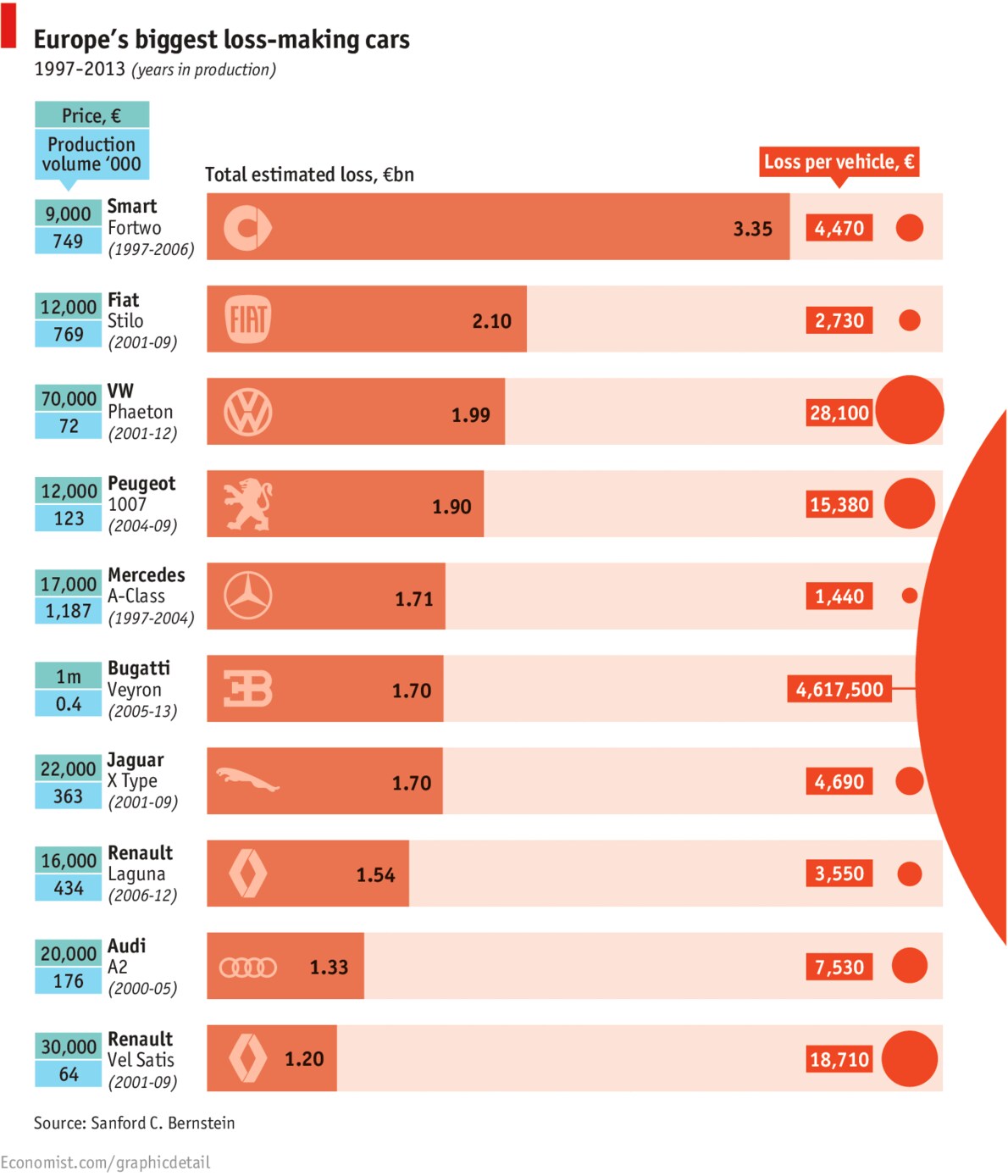 L’Economist ha classificato, in ordine di perdita, i dieci modelli meno redditizi realizzati dalle più importanti case automobilistiche europee. Tra questi c’è anche l’italiana Fiat Stilo