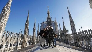 La bella giornata di sole ha regalato a milanesi e turisti l'occasione di splendide foto dalla terrazza della cattedrale.