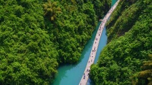 Immagini aeree mostrano lo straordinario percorso panoramico realizzato sopra il fiume Xuanen a Enshi, nella valle di Hubei, nella zona centrale della Cina, un tratto d'acqua una volta accessibile solo tramite barche a remi. La passerella galleggiante, in legno, di 500 metri di lunghezza,...