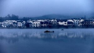 La nebbia diventa quasi un fluido a causa del suo moto complessivo e sembra come posarsi a Hongcun, un villaggio che si trova nella provincia di Anhui, in Cina, vicino alle pendici meridionali dei monti Huangshan.