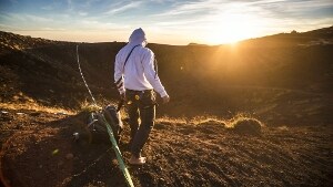 A poche ore dall’inizio del Red Bull Airlines, una competizione che vede 12 slackliner sfidarsi per il titolo di campione in Piazza Teatro Bellini a Catania, Micky Wilson, atleta americano in gara, ha deciso di avventurarsi sulle cime del Vulcano Etna per tentare un’impresa che nessuno ha mai provato prima con zaino e corda in spalla.