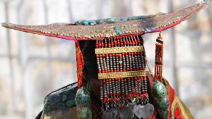 Questo abbigliamento, che ha prima vista può apparire opprimente per quanto variopinto, ha una storia millenaria ed è famoso per la ricchezza dei suoi mille accessori colorati di cera d'api, perle, coralli e delicate decorazioni d'oro e d'argento e a questo sfarzo deve il suo nome: il "costume del pavone".