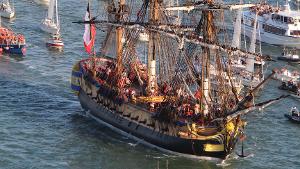 L'Hermione fu una fregata di classe Concorde della marina militare francese, varata nel 1779 a Rochefort, in Francia. Interamente costruita in rovere, la nave era lunga 145 piedi (44 metri), pesava 550 tonnellate (1160 tonnellate a pieno carico), ed era armata con 32 cannoni da 12 libbre. A bordo...