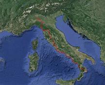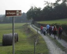 Il tradizionale percorso della via Francigena partiva dall’Inghilterra, passava per le Alpi in Valle d’Aosta e valicava l’Appennino in territorio parmense fino ad arrivare a Roma. Presto diventò un crocevia di segni, emblemi, culture e linguaggi dell’Occidente Cristiano. Oggi è di nuovo percorribile