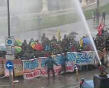 Cariche di polizia e idranti in azione per disperdere i manifestanti. Fermata una ragazza
