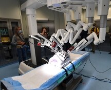 Equipe medica esegue cistectomia su un paziente a 3.000 km di distanza da una console collegata al robot