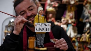La statuina dell'attivista svedese è l'ultima attrazione nella famosa via del centro storico di Napoli