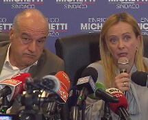 "Io questa straordinaria vittoria della sinistra non la vedo" ha detto la presidente di Fratelli d'Italia, Giorgia Meloni accanto al candidato sindaco del centrodestra per Roma, Enrico Michetti