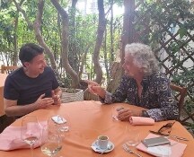 Il garante del Movimento 5 stelle pubblica su Facebook una foto con lui e l'ex premer sorridenti a tavola a Marina di Bibbona