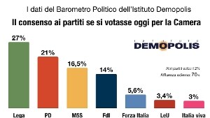 Lega in calo ma resta il primo partito