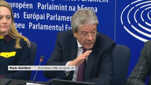 Conferenza stampa a Strasburgo di Paolo Gentiloni commissario europeo all'Economia