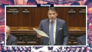 Il premier Conte ed il ministro dell'Economia Gualtieri in conferenza alla fine del vertice sulla manovra