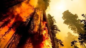Si tenta di proteggere il Generale Sherman, l'organismo vivente più grande della Terra, la cui base è stata avvolta in teli ignifughi