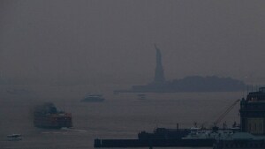 Il fumo prodotto da migliaia di ettari di bosco in fiamme si sta spostando verso la costa Est, favorito dai forti venti