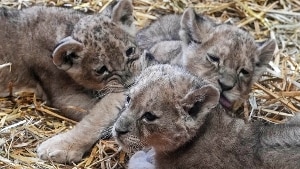 Sotto l'occhio vigile di mamma Fiona, la splendida leonessa
