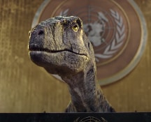 Frankie il dinosauro prende la parola alla tribuna delle Nazioni Unite