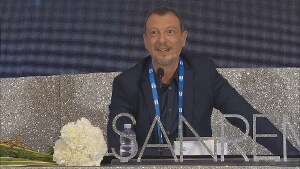 Amadeus mi ha detto "sei migliorato, fra 3 mesi compi 60 anni e ti trovo figo", scherza lo showman in sala stampa all'Ariston, "ti voglio al mio fianco, né avanti né indietro"