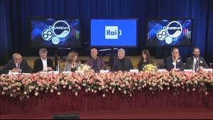 Teodoli, direttore di Rai1, con un mazzo di rose rosse per convincerlo a dire subito sì. "E' un onore e privilegio essere arrivato in cima alla scala"- dice Baglioni durante la conferenza stampa finale- "adesso si ricomincia da capo. Potrei cambiare subito il regolamento - aggiunge con un sorriso -...