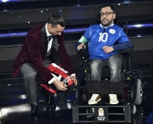 Arrivo rocambolesco per l'attaccante del Milan al Festival. Bloccato in autostrada per un incidente per più di tre ore, arriva grazie a un passaggio