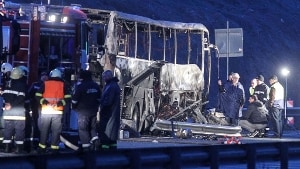 Il bus si è rovesciato ma non è ancora chiaro se abbia preso fuoco prima o dopo. Il tragico evento è avvenuto a una quarantina di chilometri a sud di Sofia (Bulgaria). Dei 52 a bordo soltanto 7 sono vivi e