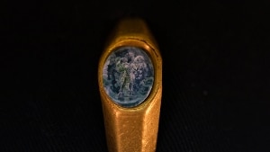 Sulla gemma, l'immagine di un giovane pastore che indossa una tonaca e tiene sulle spalle una pecora, o un montone, risalente agli albori della cristianità