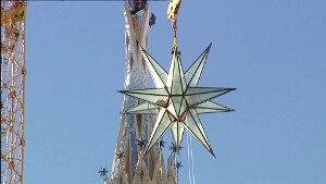 Una scultura di vetro e acciaio larga 7,5 metri rende la Torre della Vergine Maria il punto più alto della basilica