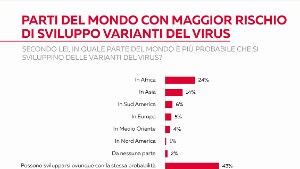I dati in breve dell'indagine "La narrazione sull'Africa" di Ipsos per conto di Amref Italia: 1 italiano su 4 ritiene l’Africa il Continente in cui è più probabile che si sviluppi una variante del virus. Per 8 italiani su 10, i Paesi ricchi dovrebbero farsi carico dell’immunizzazione dei Paesi africani. Il primo punto in comune tra italiani e gli africani è “essere un popolo di migranti”. Per 4 giovani su 10, l’ostacolo più grande all'integrazione viene dalla chiusura mentale