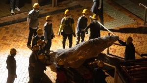 L'opera "Pillar of Shame" di Jens Galschiot, alto otto metri, si trovava nel campus dell'Università dal 1997, l'anno in cui l'ex colonia britannica venne restituita alla Cina