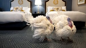 Le tradizionali foto nella suite dell'Hotel di Washington prima della cerimonia alla Casa Bianca in occasione di Thanksgiving