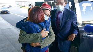L'abbraccio con la madre all'aeroporto JFK di New York