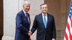 Stretta di mano tra Mario Draghi e Joe Biden all'arrivo del presidente americano a Palazzo Chigi. Il premier italiano ha accolto il leader Usa all'ingresso principale del palazzo, poi sono entrati nel cortile della presidenza, il braccio di Biden poggiato sulla spalla di Draghi. I leader,...