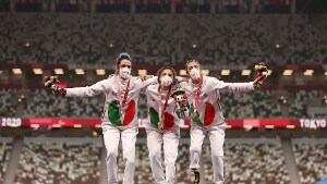 Oro a Sabatini, argento a Caironi e bronzo a Contrafatto (che dedica la medaglia all'Afghanistan). Jacobs: "Grazie per avermi fatto emozionare". Le congratulazioni di Draghi. Prima, l'argento di Mijno e Travisani nel tiro con l'arco squadre miste