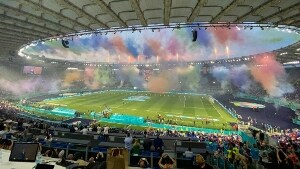 Il pubblico omaggia il calciatore della Danimarca colpito da un malore. La squadra inglese si inginocchia in segno di solidarietà al Black Lives Matter